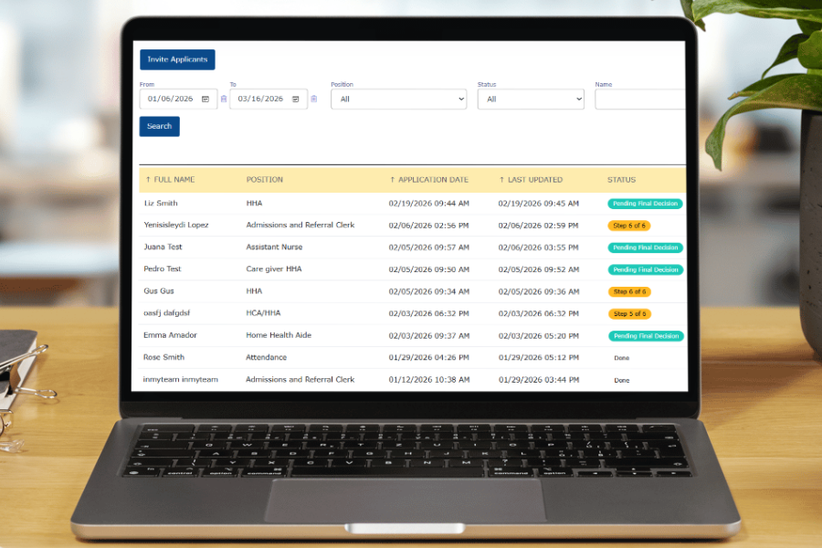 The INMYTEAM Job Applicants Suite was built specifically to simplify and modernize hiring for healthcare agencies. It allows agencies to create customizable job applications, invite applicants instantly, track application progress in real time, and convert approved applicants into staff profiles automatically.