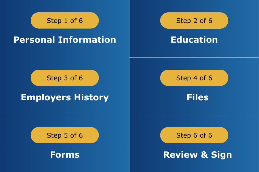 The INMYTEAM Job Applicants Suite guides applicants through a clear and structured six-step application process, making it easy for them to complete their information while allowing agencies to track progress in real time.